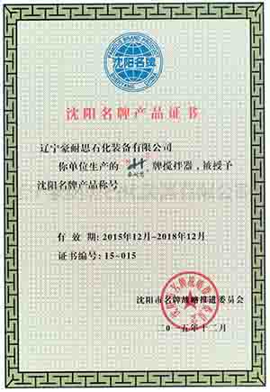 沈阳名牌产品证书