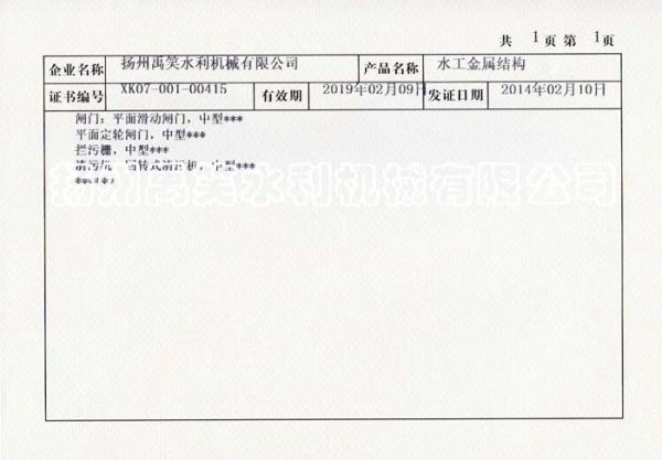 卷扬式启闭机、螺杆式启闭机、液压启闭机、钢(铸铁)闸门、龙头闸门、拍门、拦污栅、清污机螺旋压榨机等
