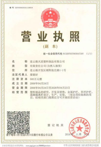 您好,欢迎访问天星护栏(连云港天星塑料制品有限公司)网站。