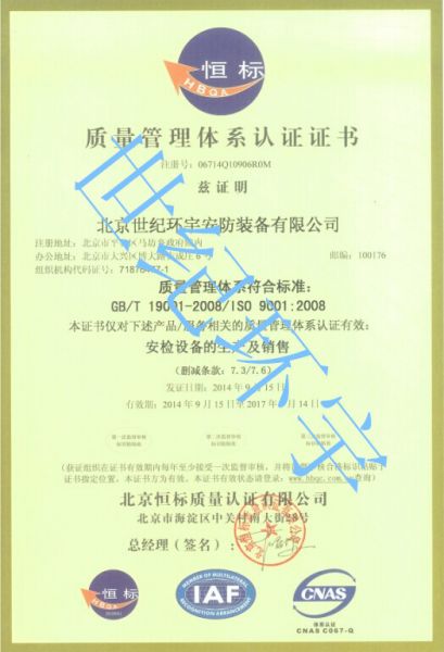 北京世纪环宇安防装备有限公司是国家ISO:9000、ISO:14000认证企业,公司成立于2000年。是北京金属探测门行业里的先驱,也是北方市场具有竞争力的核心企业。如今,已经历经风雨10年的世纪环宇公司厚积厚发,再立潮头,全力打造安检行业的龙头。