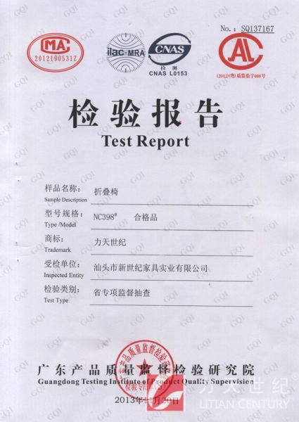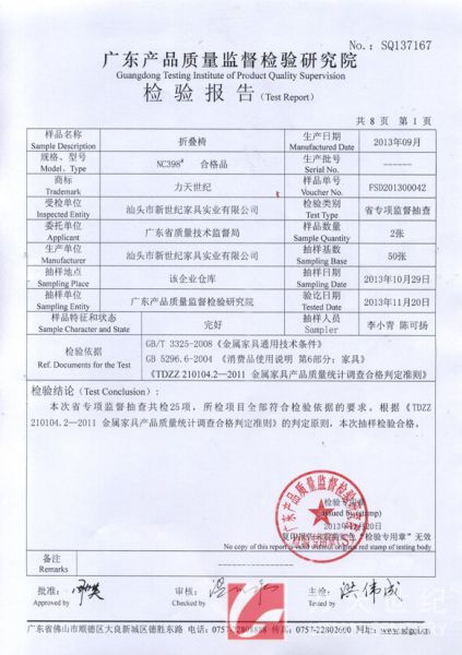 折叠椅检验报告